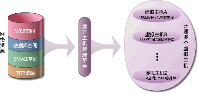 魔方主机是互联天下在虚拟主机技术基础上,最近推出的一个主机新产品。简单的来说,魔方主机是一个虚拟主机合集产品,它只用一次购买网络资源(如WEB空间容量、IIS链数、数据库空间容量等),即可开通多个虚拟主机,并可随时自由分配每个虚拟主机的可用资源。